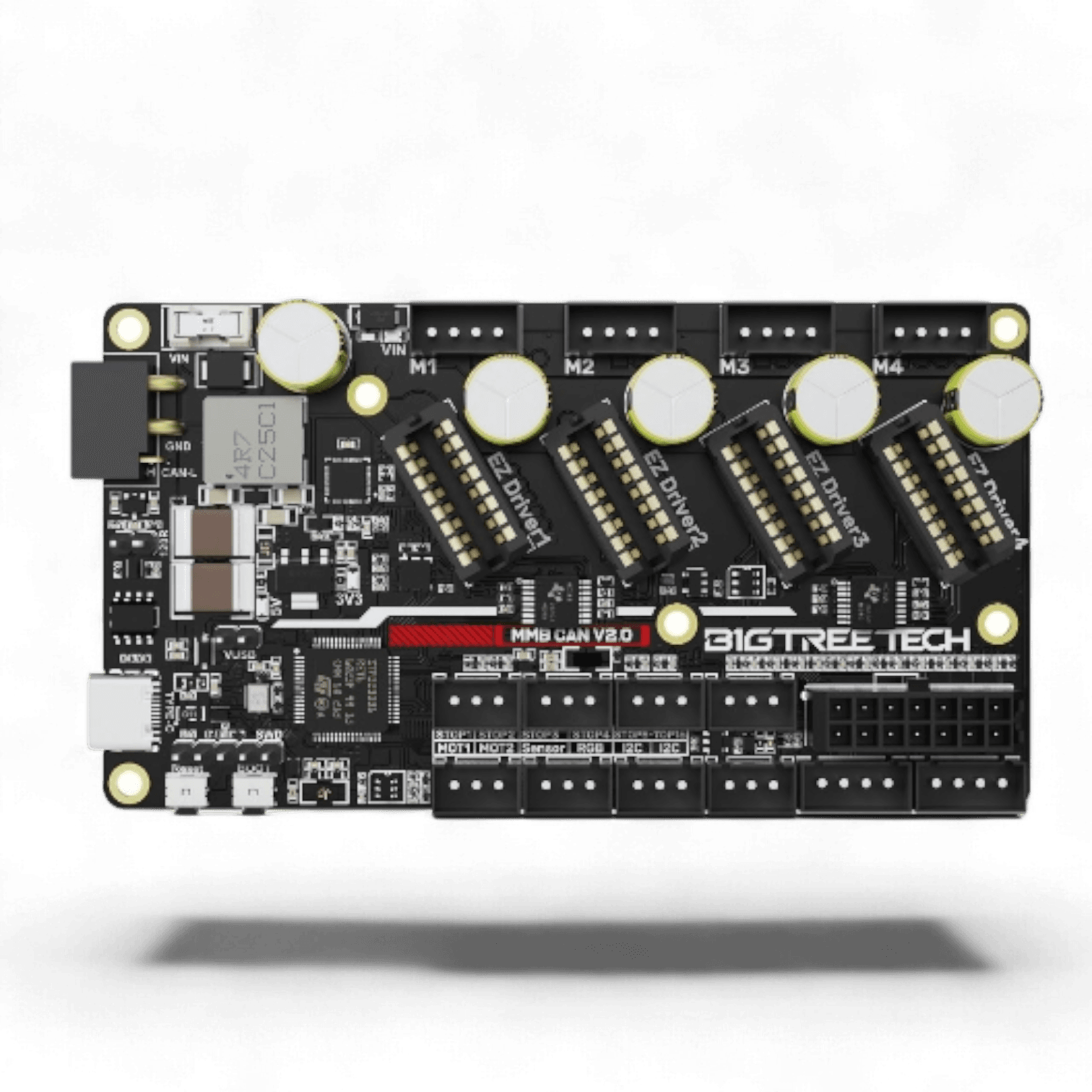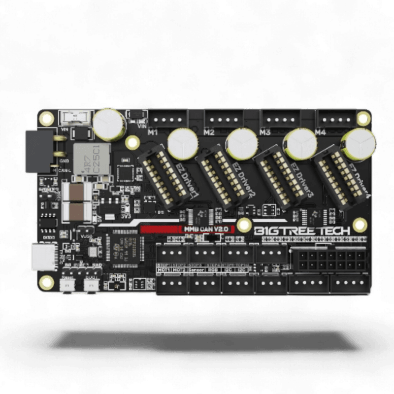 The Bigtreetech MMB CAN is a control board for multi-material 3D printing systems, e.g. the ERCF. It simplifies wiring by communicating via USB or CAN.