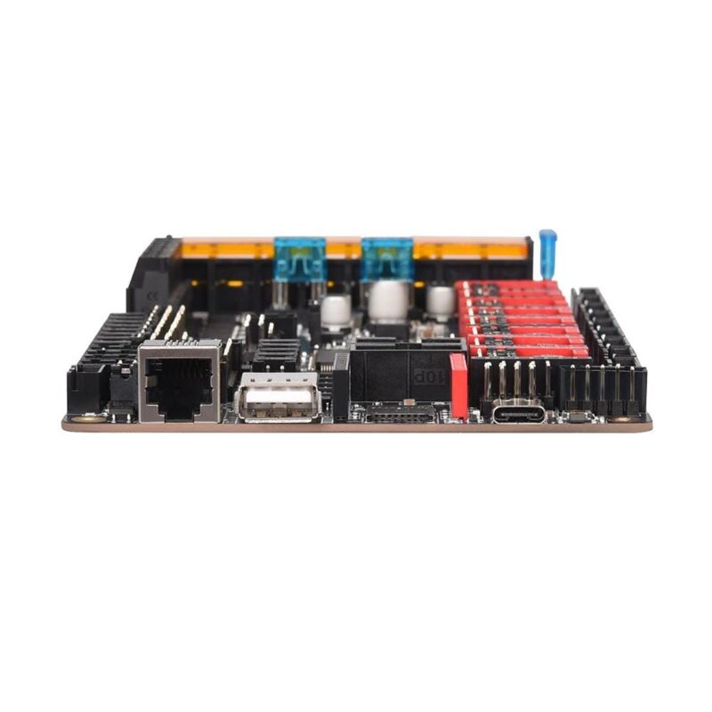 It supports Klipper and Marlin and provides space for up to 8 stepper drivers on one controller board in STEP/DIR, UART or SPI mode.