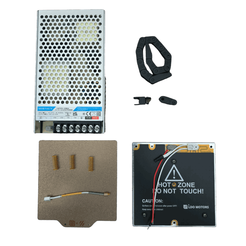 The LDO Voron 0.1/0.2 Build Plate Kit enables you to upgrade your Voron 0.1 or 0.2 to the new PI Film heater style or give you everything you need for your Voron 0.2 bed assembly.