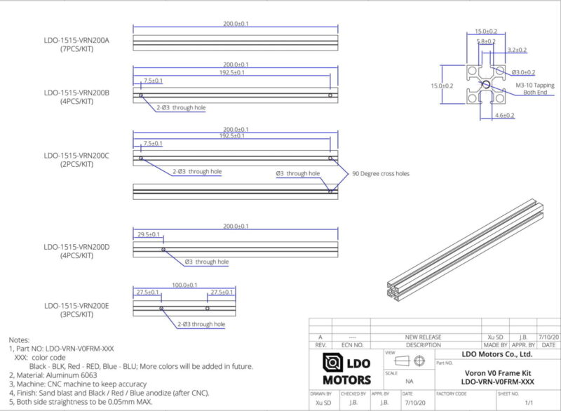 Voron 0.1 Frame Set (LDO)